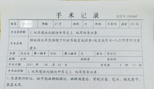 西安新城中大耳鼻喉医院权威医生张全安教授根据张杨琳的病史、听力损失情况、双耳内部症状,通过与患者多次沟通讨论,决定亲自操刀为张杨琳进行手术,实行“全安系统疗法”,以达到中耳炎治疗与听力重建的双重效果。