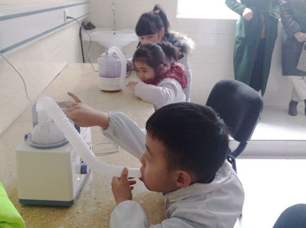 “小医生”学做雾化
