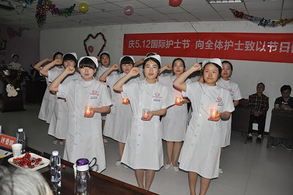 授帽仪式完毕,西安新城中大耳鼻喉医院全体护士面对患者整齐列队,手持蜡烛,进行了庄重的宣誓:
