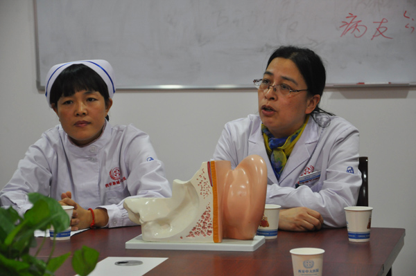 病友与住院部裴玲玲主任、护士长孙雪艳交流病情
